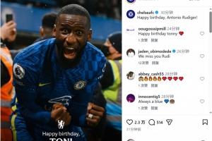 体育资讯3月3日讯 今天是德国中卫吕迪格的33岁生日,老东家切尔西为他庆生。