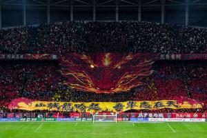 成都球迷挂起“雄起成都”的横幅